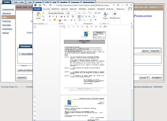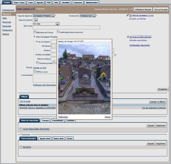 - Gestion des concessions, des sépultures